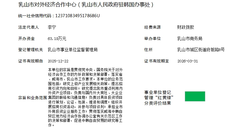 乳山市对外经济合作中心(乳山市人民政府驻韩国办事处)