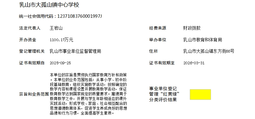 事业单位信用信息栏