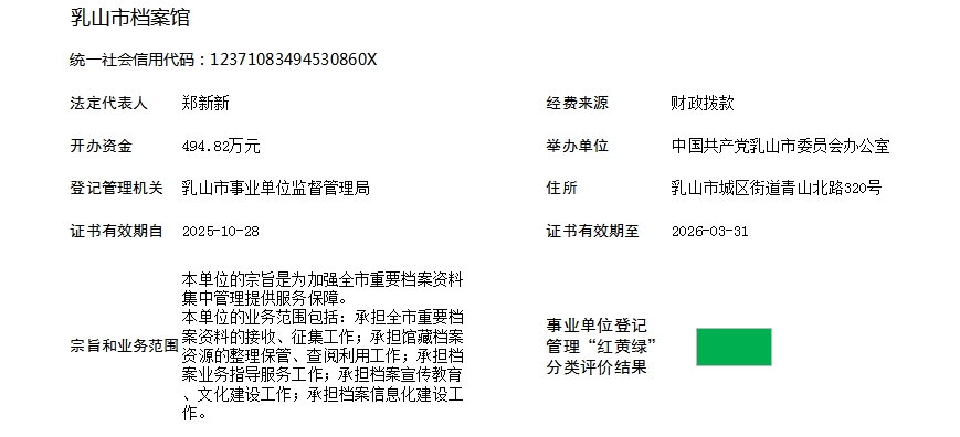 事业单位法人基本信息