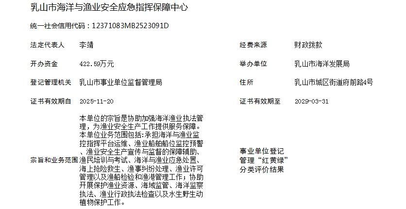 乳山市海洋与渔业安全应急指挥保障中心