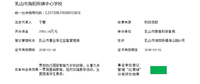 事业单位信用信息栏