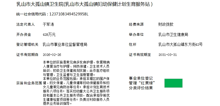 乳山市大孤山镇卫生院(乳山市大孤山镇妇幼保健计划生育服务站)