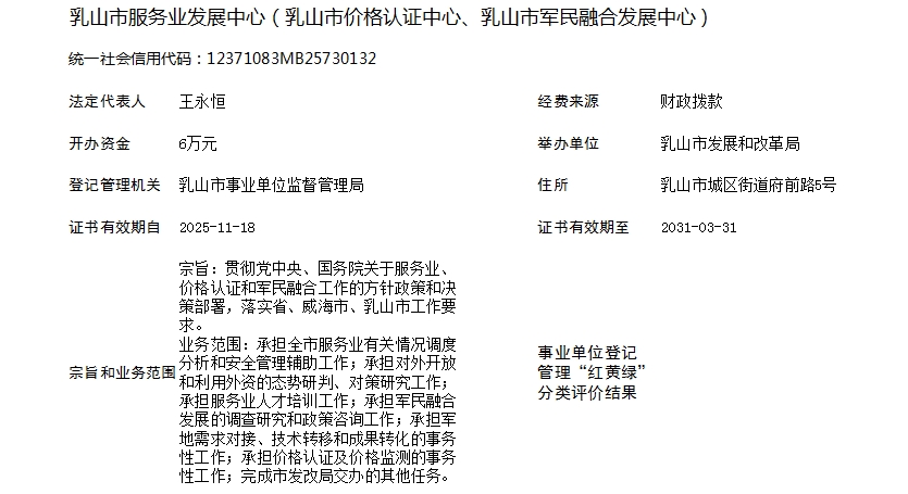 乳山市服务业发展中心(乳山市价格认证中心、乳山市军民融合发展中心)